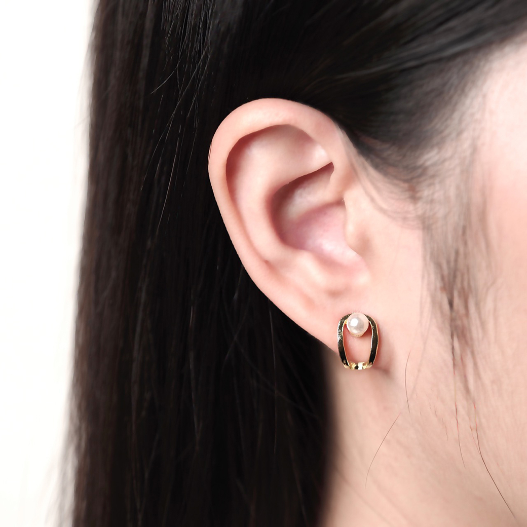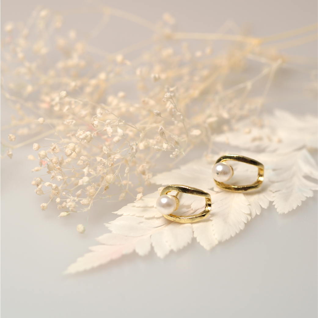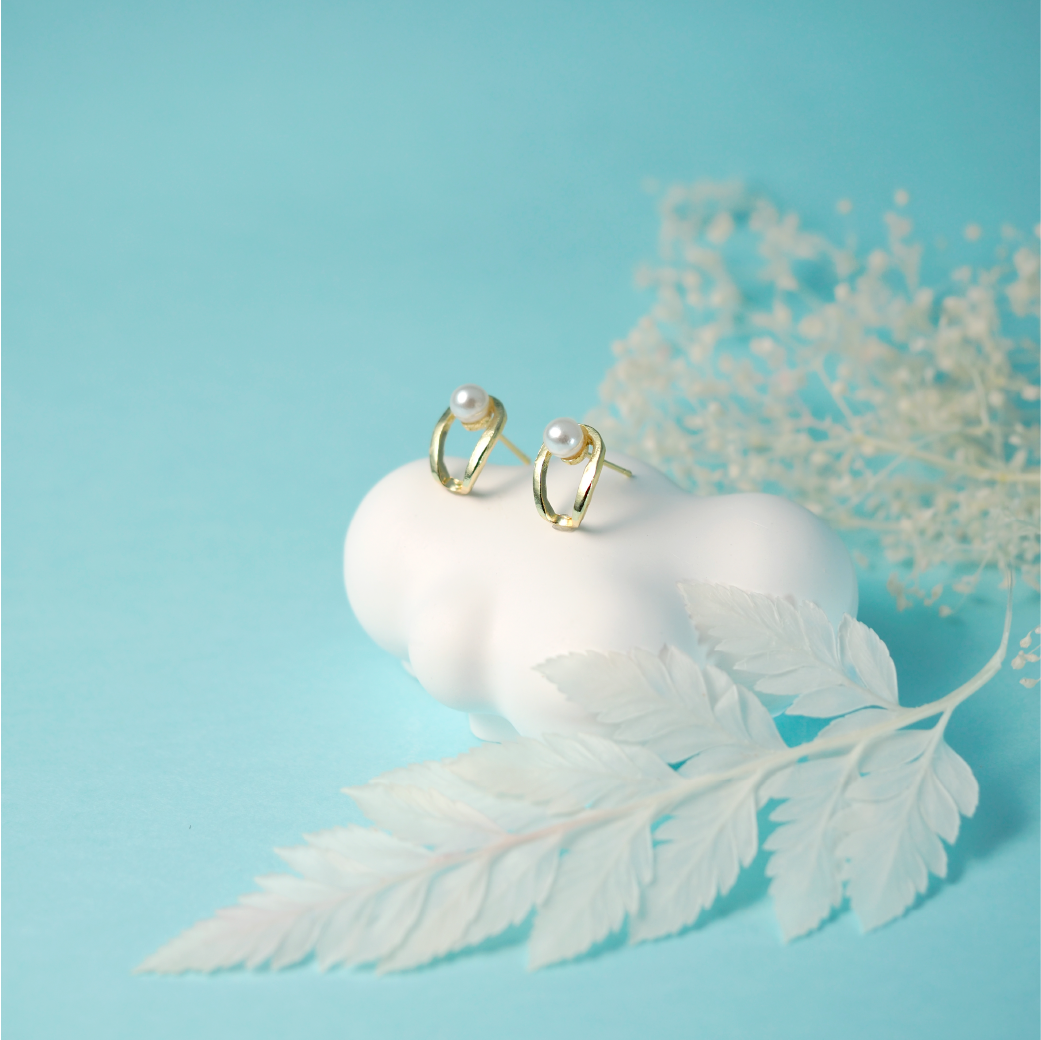 ‧ 使用珍珠搭配簍空金飾設計,展現優雅氣質