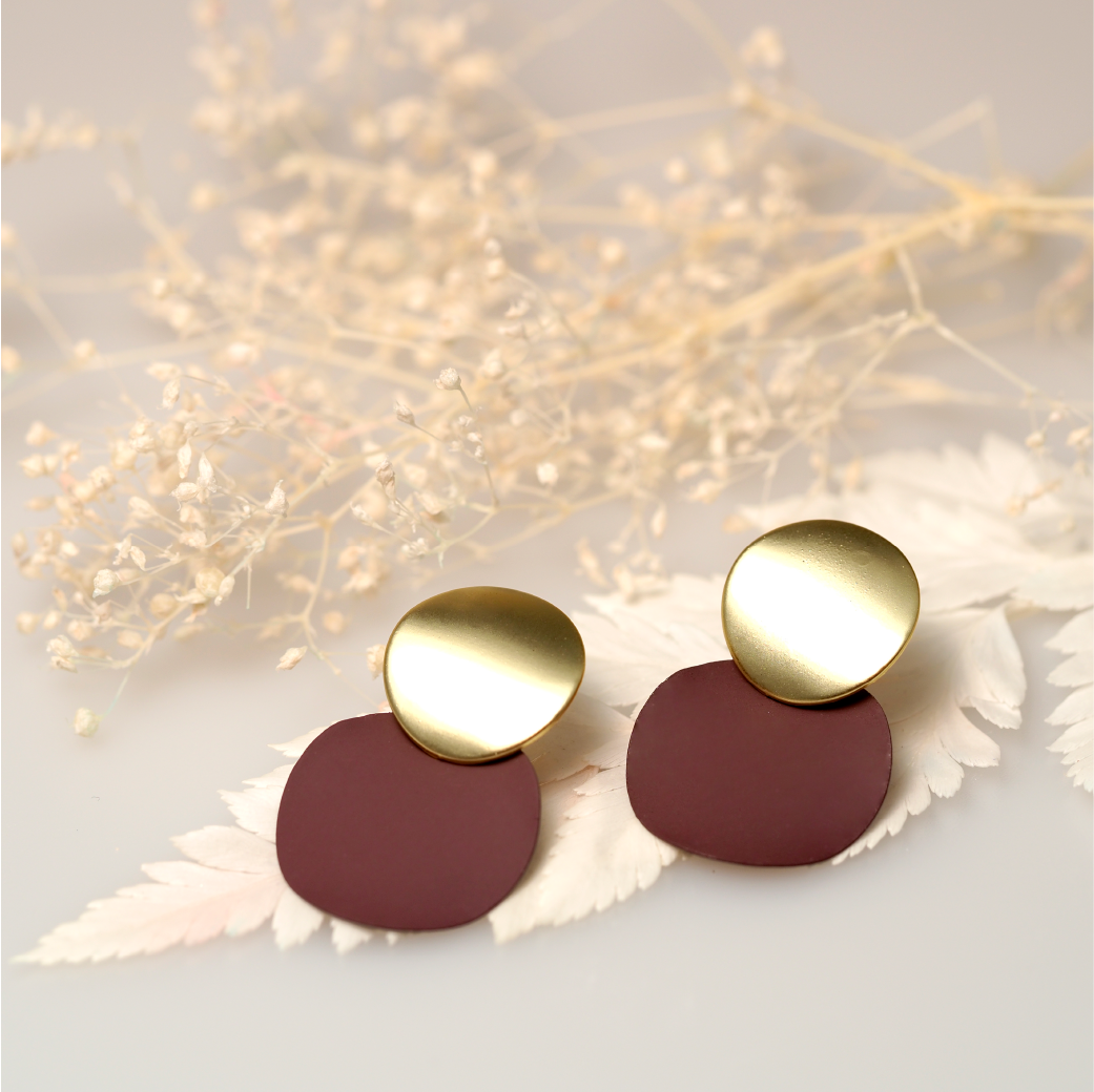 ‧ 簡約的霧金與酒紅色垂墜設計,展現優雅穿搭氣質