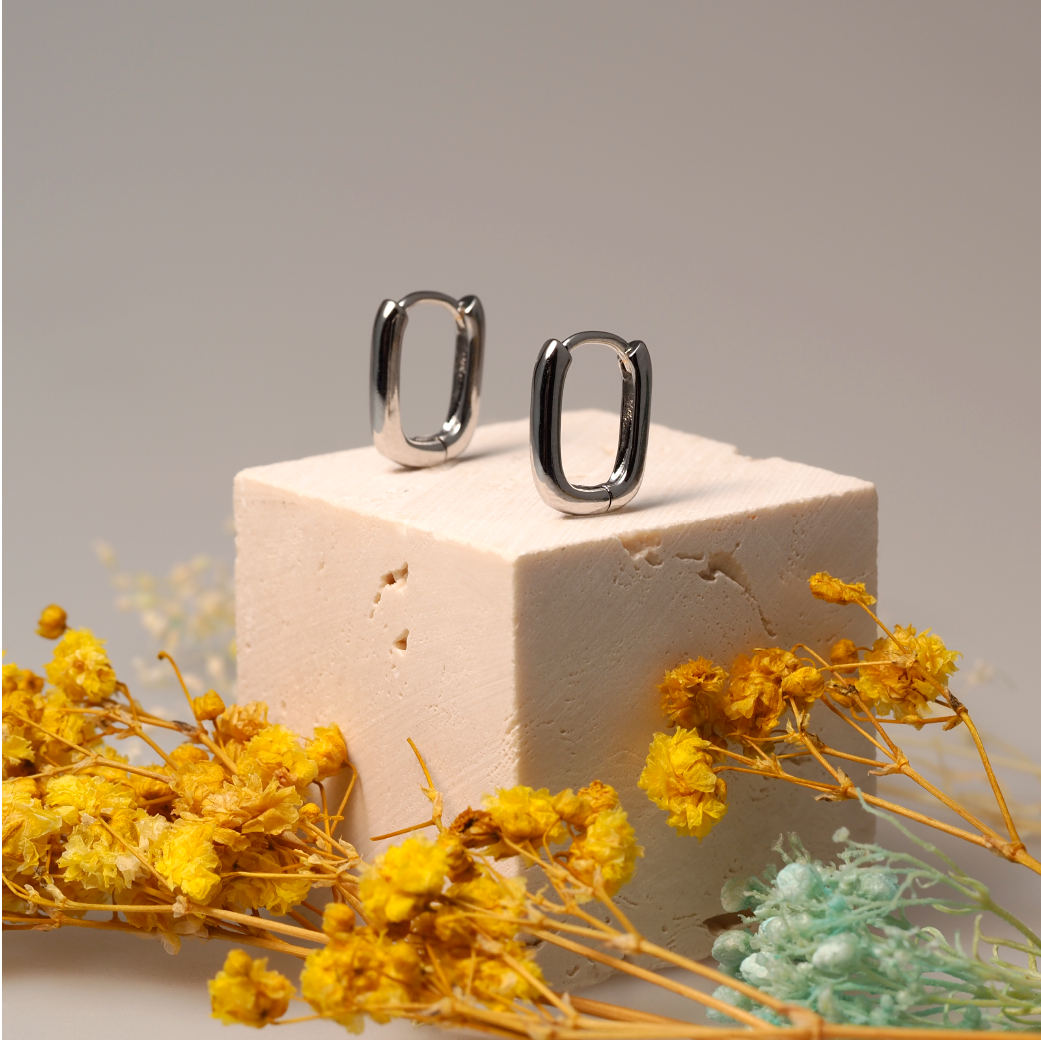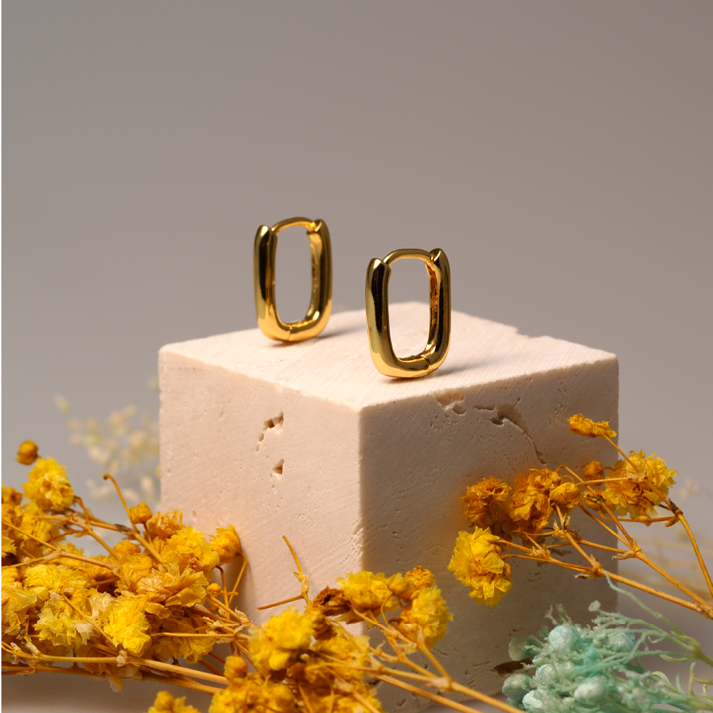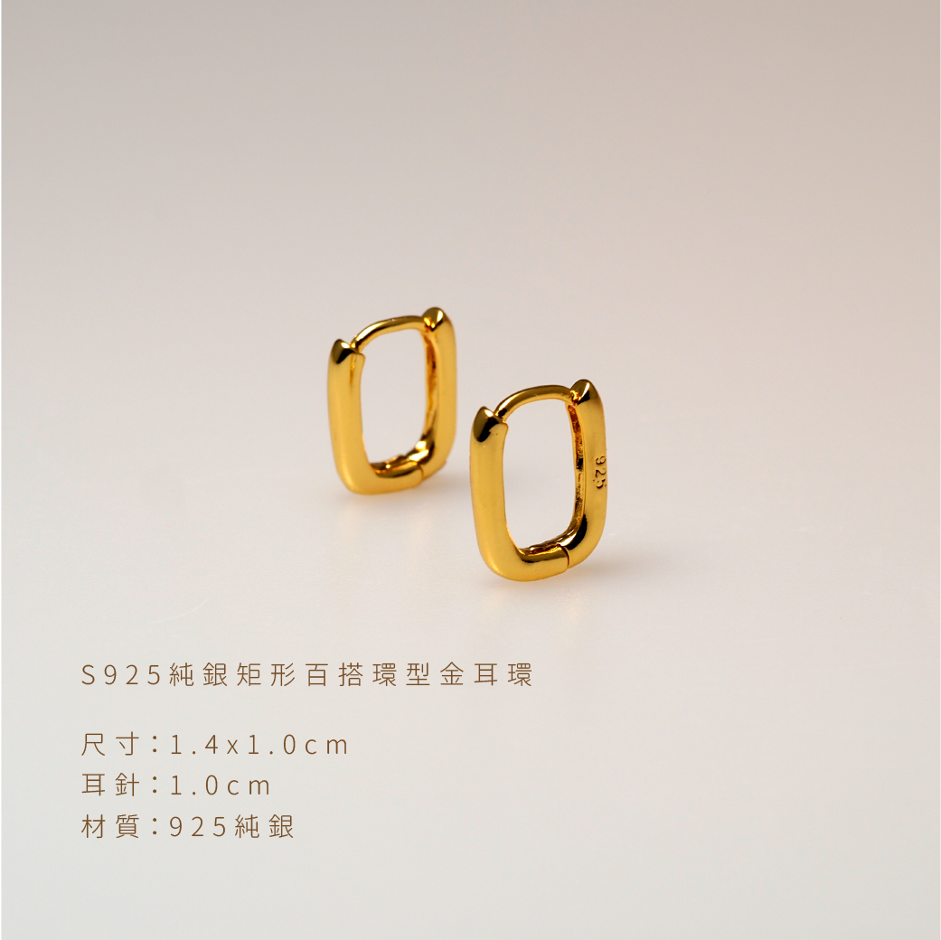 ‧小巧方形環耳設計,修飾臉型增添氣質