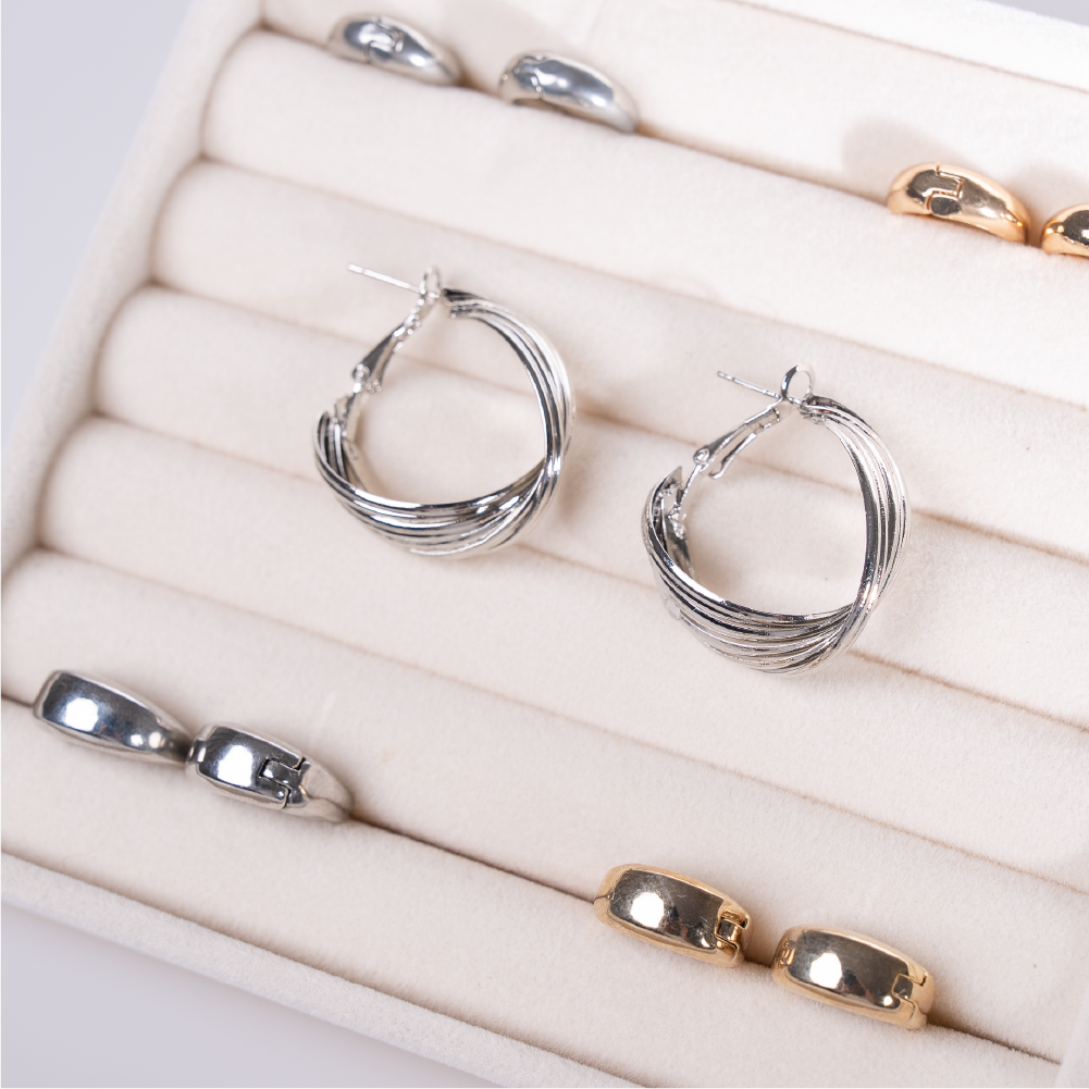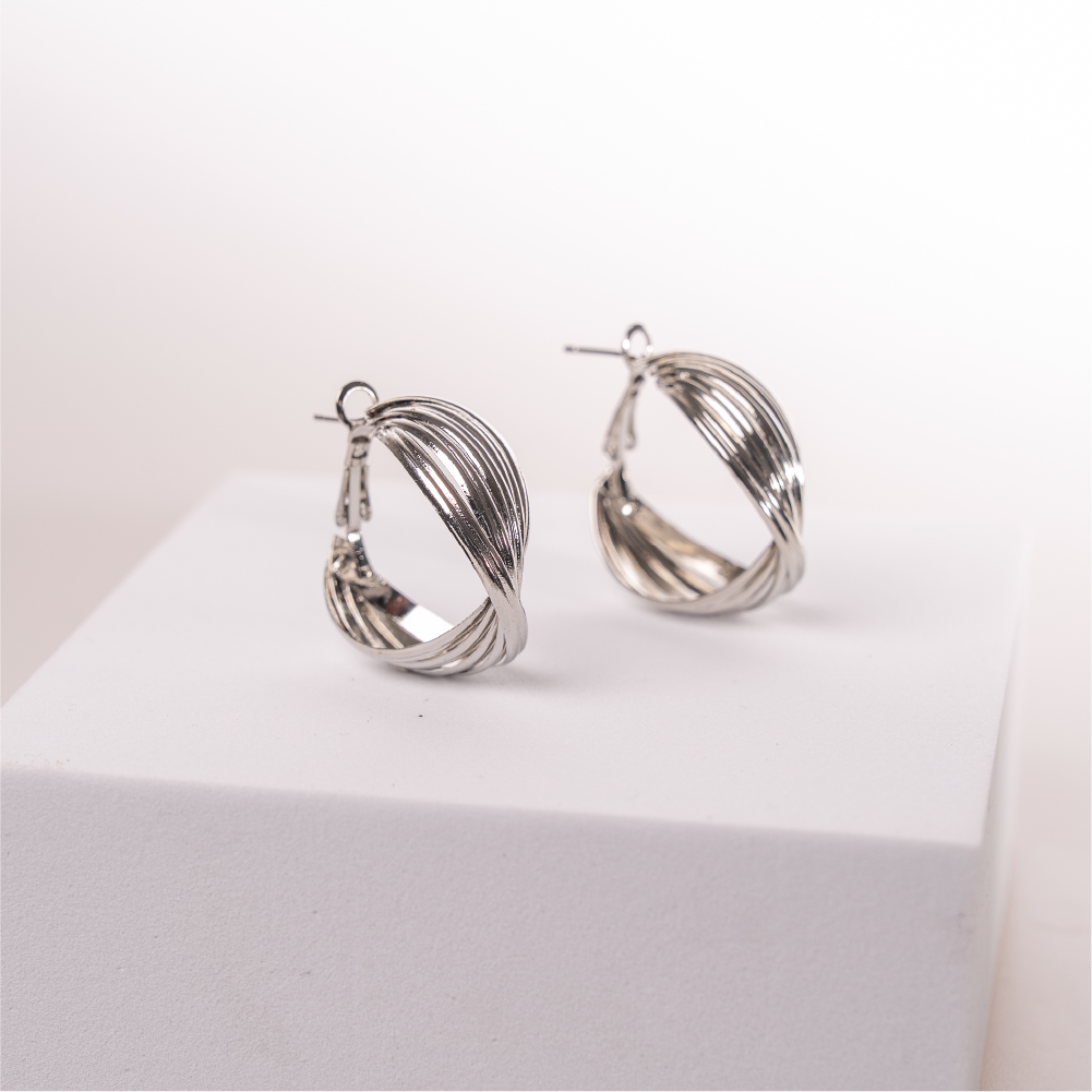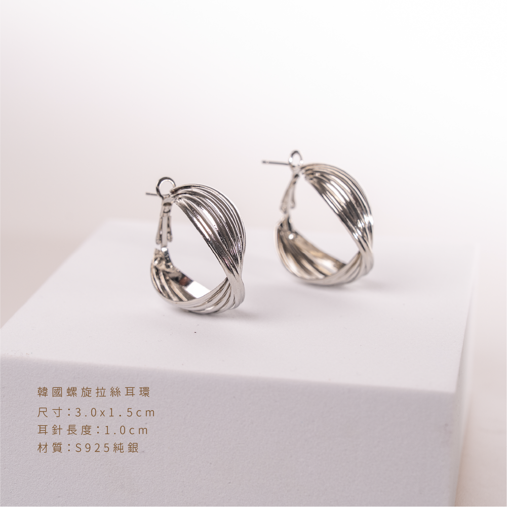 ‧ 銀色拉絲大環耳設計,氣場獨具